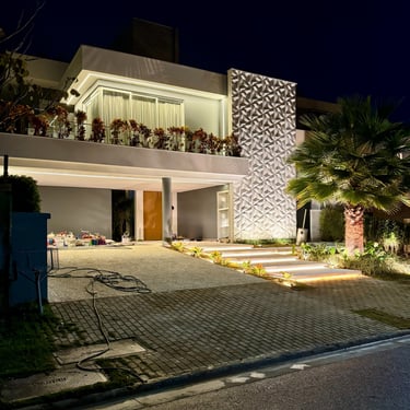 O Projeto NEC, localizado no condomínio Burle Marx, em Alphaville, consiste em um retrofit completo externo e interno, desenvolvido para atualizar a residência e adequá-la a um padrão contemporâneo de alto nível. A proposta teve como foco a modernização dos ambientes sociais e das áreas externas, elevando a percepção estética, funcional e patrimonial do imóvel.