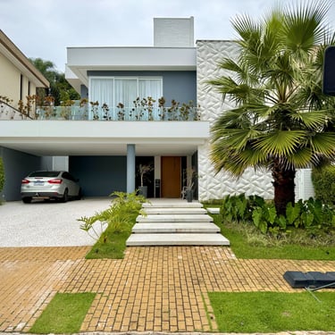 O retrofit externo redefiniu a linguagem arquitetônica da residência, trazendo uma leitura moderna e imponente, com volumes bem marcados, linhas limpas e proporções equilibradas. A adoção de tons claros reforça a sensação de amplitude, sofisticação e atemporalidade, além de valorizar a arquitetura e sua relação com o entorno.