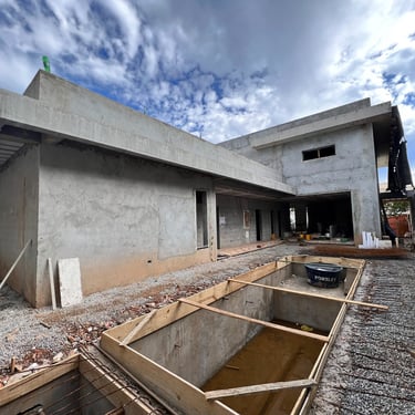 Ambas as soluções foram especificadas com critérios técnicos rigorosos, considerando durabilidade, facilidade de execução e valorização estética a longo prazo. O resultado é uma residência que se destaca pela presença, flexibilidade e clareza arquitetônica.