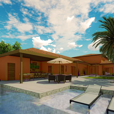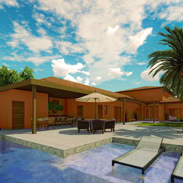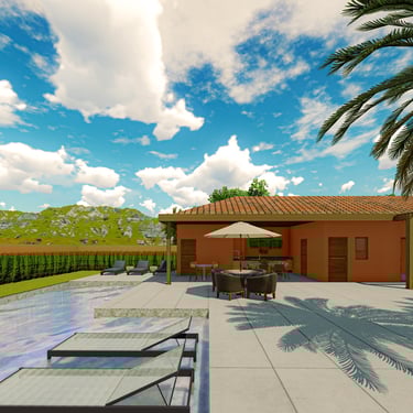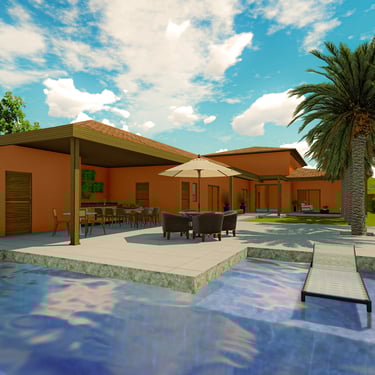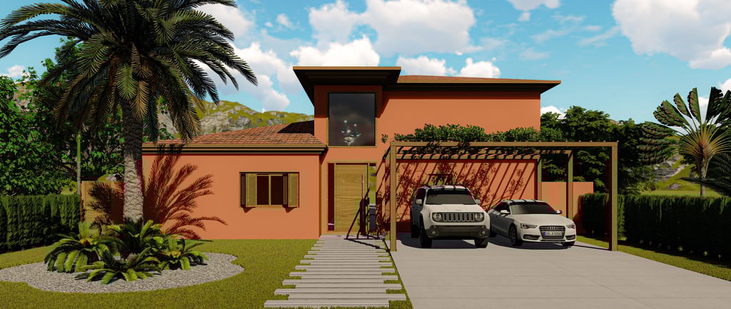 A linguagem arquitetônica adota o conceito de colonial moderno, reinterpretando elementos clássicos de forma contemporânea. Telhados aparentes, proporções equilibradas e materiais tradicionais são combinados com soluções atuais de implantação, iluminação natural e integração espacial, resultando em uma arquitetura atemporal e acolhedora.